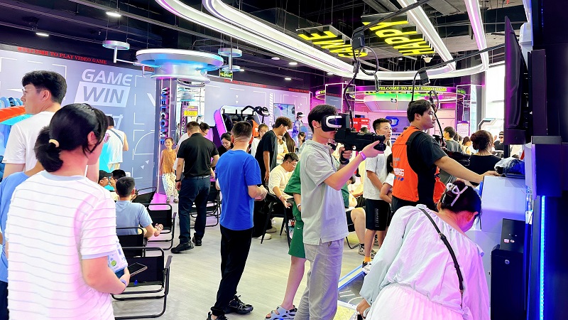 其中,二樓打造的“動(dòng)感競技場”,可讓消費(fèi)者體驗(yàn)保齡球精準(zhǔn)碰撞的樂趣,在“槍王對(duì)決”和“實(shí)彈射擊”中感受腎上腺素飆升,挑戰(zhàn)“滑索”的速度與“射箭”的專注,暢玩Switch2/PS5主機(jī)游戲,或在“炫動(dòng)單車”“金剛戰(zhàn)士”“巔峰狙擊”中釋放活力,更可在“落日休憩區(qū)”憑欄觀海,動(dòng)靜皆宜;三樓打造了“科技社交匯”,讓消費(fèi)者步入VR館即可開啟奇幻冒險(xiǎn),通過“宇宙一號(hào)”“傘途”“雙人360”“樂享滑雪”等7大尖端設(shè)備穿梭虛實(shí)之境。同時(shí),“聲控派對(duì)”“開放式舞臺(tái)”點(diǎn)燃社交熱情,桌游、麻將、碰碰車、臺(tái)球、飛鏢、模擬網(wǎng)球、“悅動(dòng)格子”“360°單車”等豐富選擇滿足不同興趣群體,更有私密“轟趴房”和舒適“太空艙”提供專屬聚會(huì)與休憩空間。